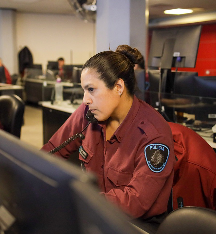 Desde allí, los oficiales de seguridad controlan distintas cámaras y analizan los movimientos del lugar. Además, mediante una potente sirena y luces estroboscópicas, se disuade cualquier situación sospechosa, se alerta al 911, a través de una comunicación cifrada, un hecho de inseguridad y activa un operativo de respuesta enviando a la policía, bomberos o ambulancia según corresponda.